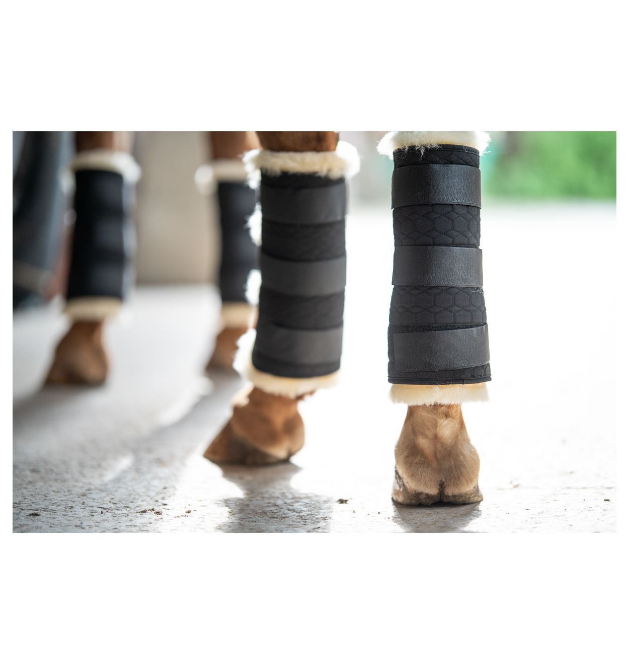 Lammfell Gelenkgamasche / Stallgamasche (Paar) hinten graphit/hellgelb (Musterware)