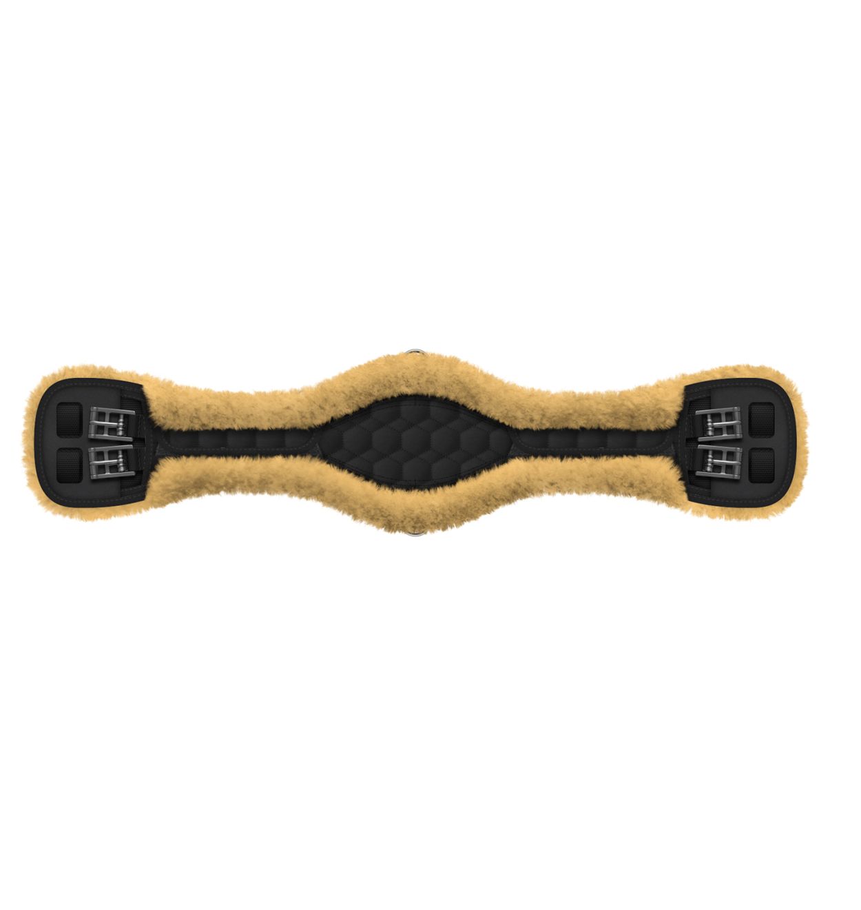 Hochwertiger Lammfell Sattelgurt in der Anatomischen Form. Für Pferde mit gut ausgeprägter Gurtlage, weit genug vom Ellbogen des Pferdes entfernt. Der Gurt ist vorne und hinten im Ellbogenbereich etwas zurückgeschnitten. (Gurt ist drehbar)