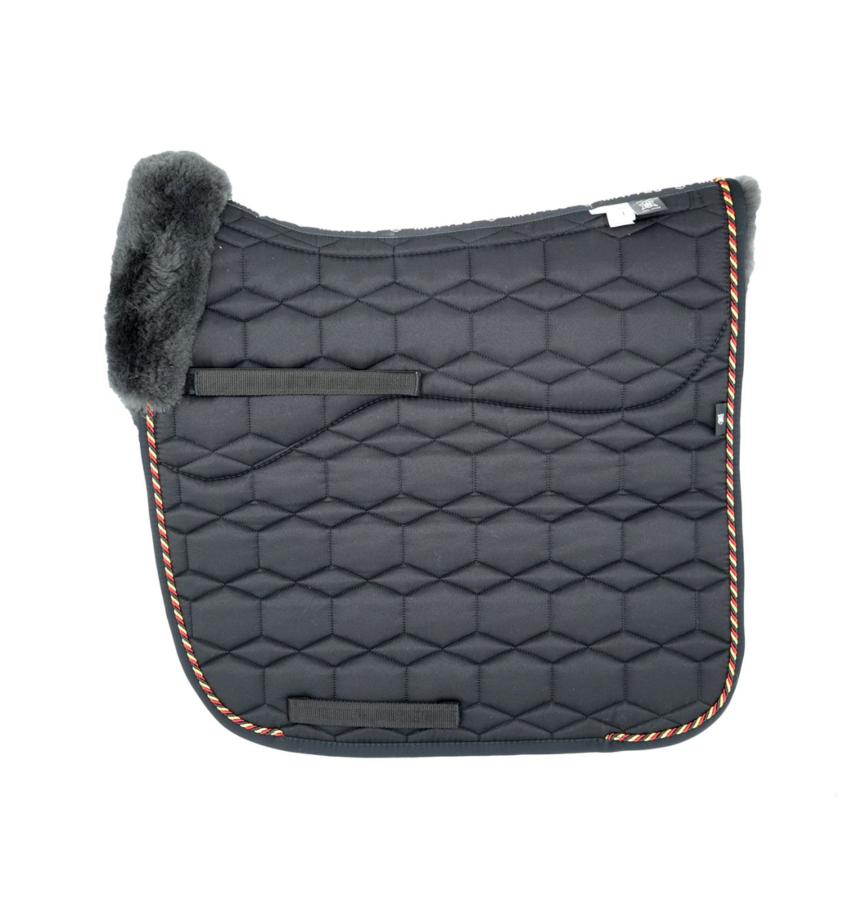Lammfell Schabracke Dressur Gr.L schwarz Kordel schwarz/rot/gold