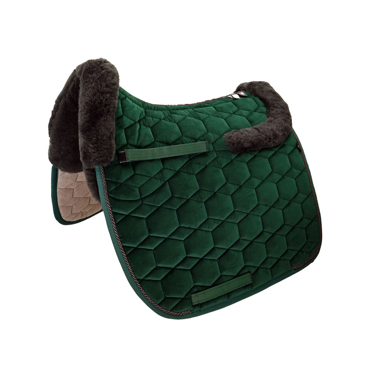 Lammfell Schabracke Dressur Gr.L Samt grün/cumbrian