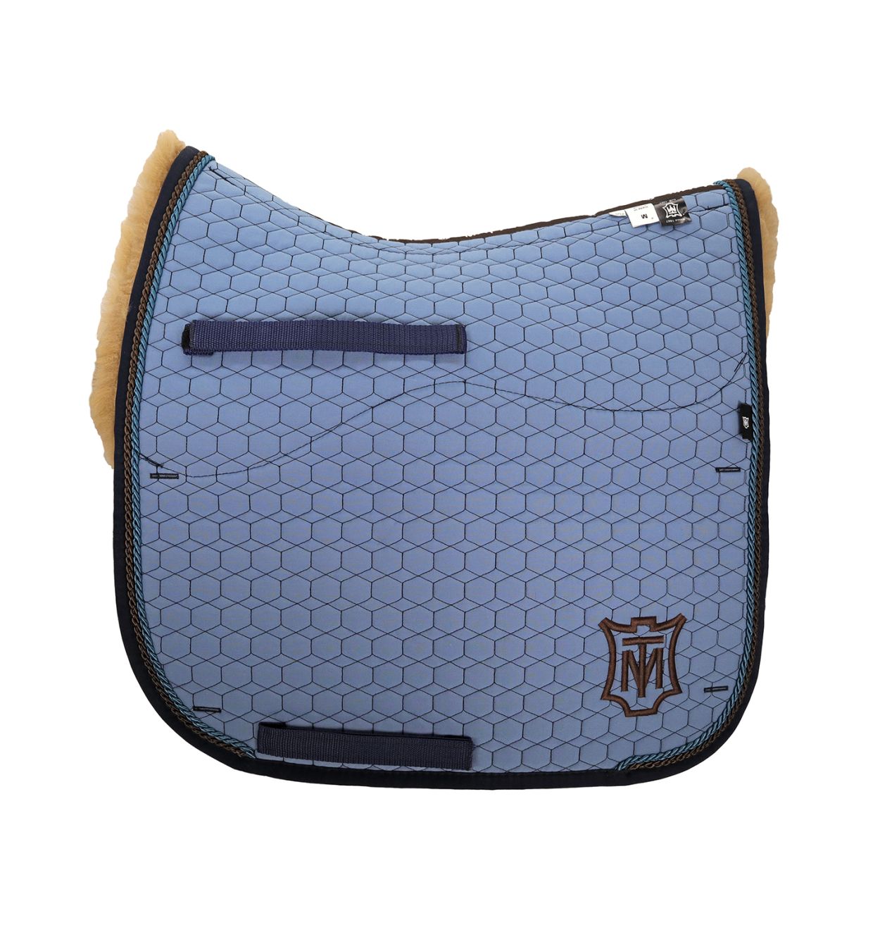 Lammfell Schabracke Dressur Gr.M cornet blue/ocker