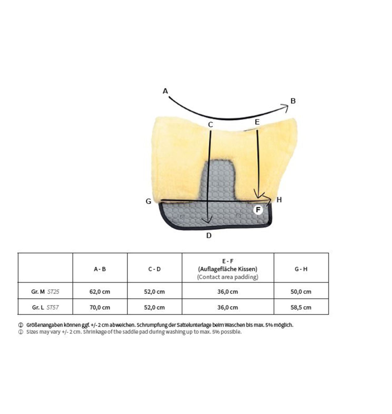 Da die Deuber Modelle – in unterschiedlichen Ausführungen erhältlich sind, bitten wir Sie, die Maße der Sattelunterlage unbedingt mit Ihrem Sattel abzugleichen, um eine optimale Passform sicherzustellen.
