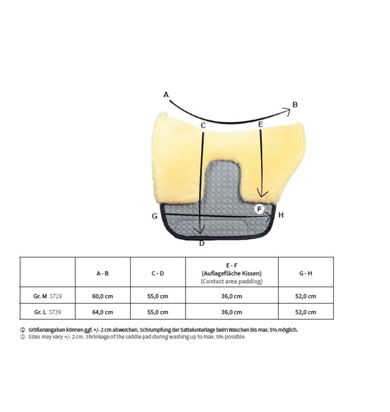 Da die Deuber Modelle – in unterschiedlichen Ausführungen erhältlich sind, bitten wir Sie, die Maße der Sattelunterlage unbedingt mit Ihrem Sattel abzugleichen, um eine optimale Passform sicherzustellen.