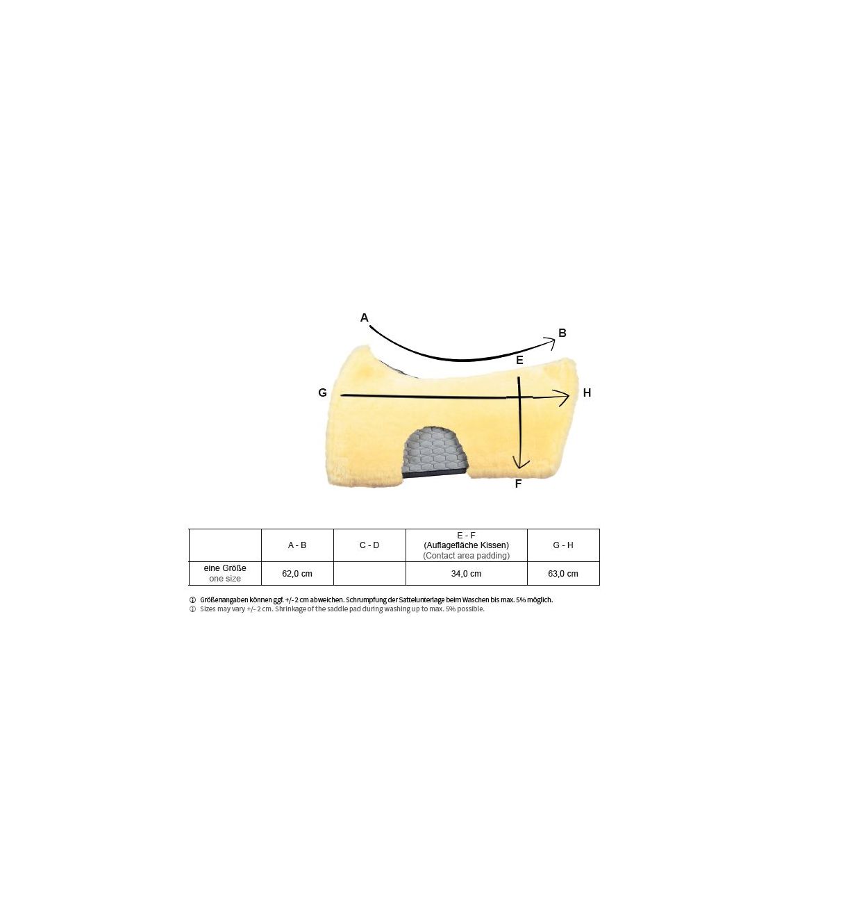 Da iberische Sättel in unterschiedlichen Formen und Größen erhältlich sind, bitten wir Sie, die Maße des Sattelkissens unbedingt mit Ihrem Sattel abzugleichen, um eine optimale Passform sicherzustellen.